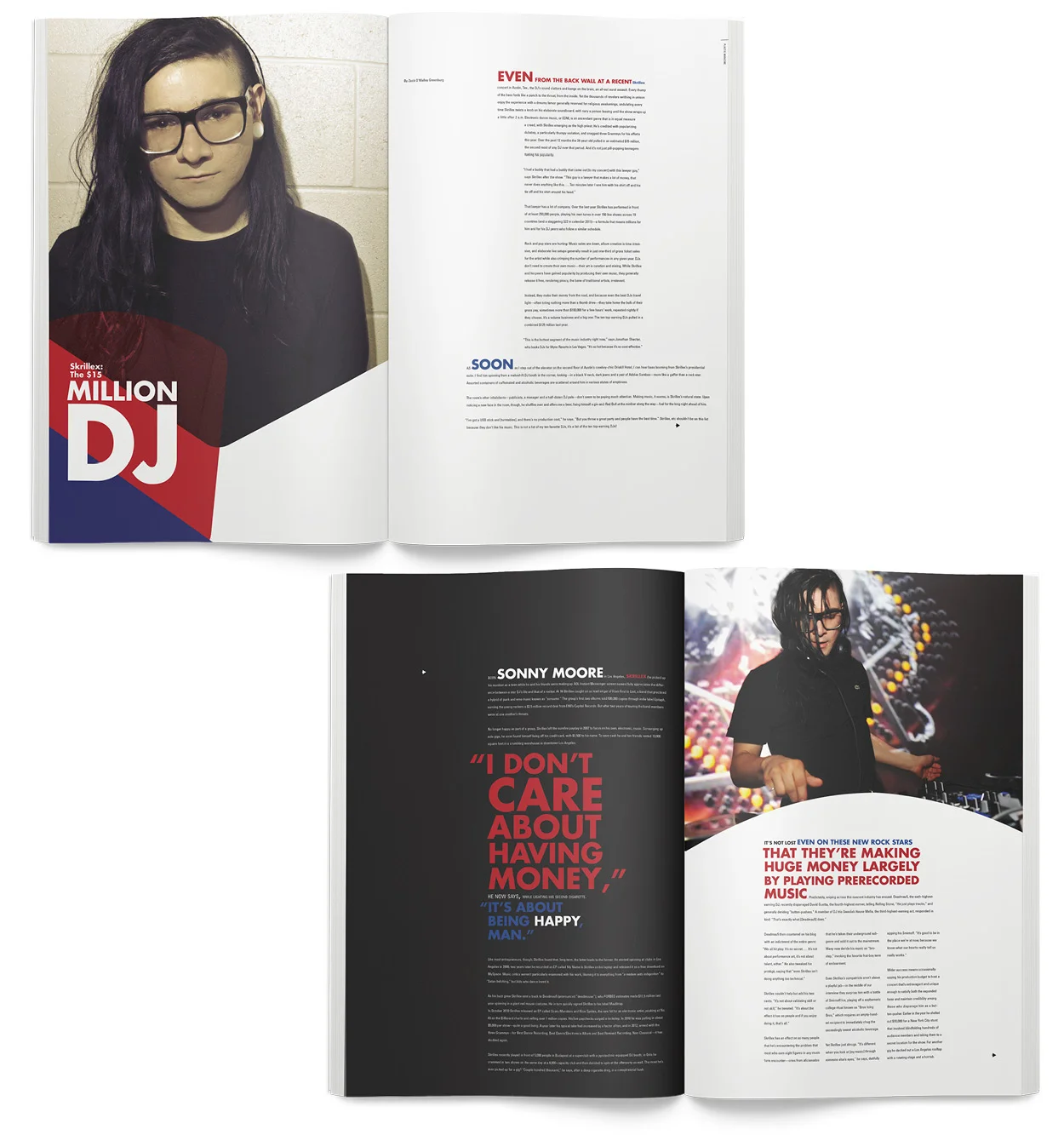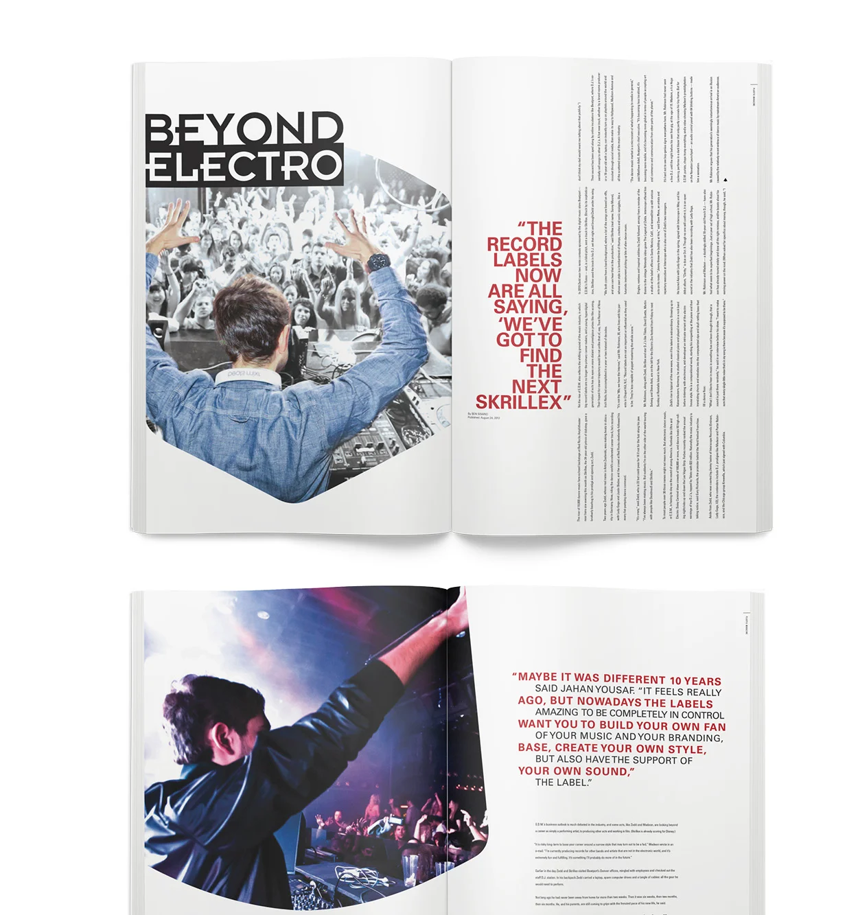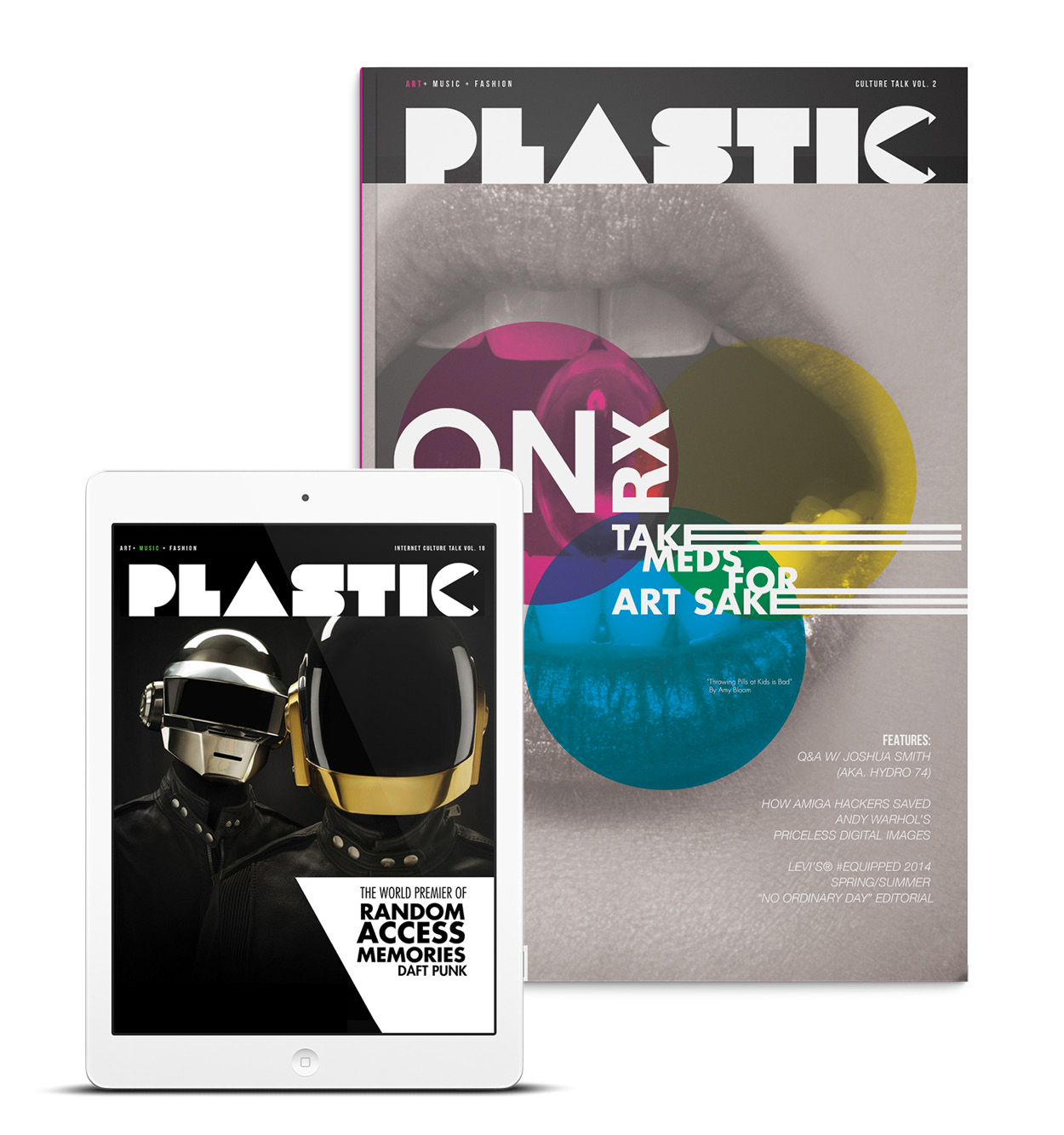 Plastic is a conceptual magazine of art, music, and fashion that satirically creates a statement about the spreading superficiality in society, while simultaneously spotlighting such trends. The selected typeface further emphasizes that point with its stiff geometric form. The shapes used on the spreads enhance the minimalistic look and highlight the main points.